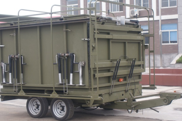 3、车架:一般选用优质Q345钢板折弯成槽型,焊接式框架结构,焊接节点选择合理,外形美观。四角选用机械升降支撑腿;