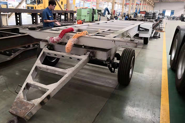 3、车架:一般选用优质Q345钢板折弯成槽型或工字梁,焊接式框架结构,焊接节点选择合理,外形美观。四角选用机械升降支撑腿;
